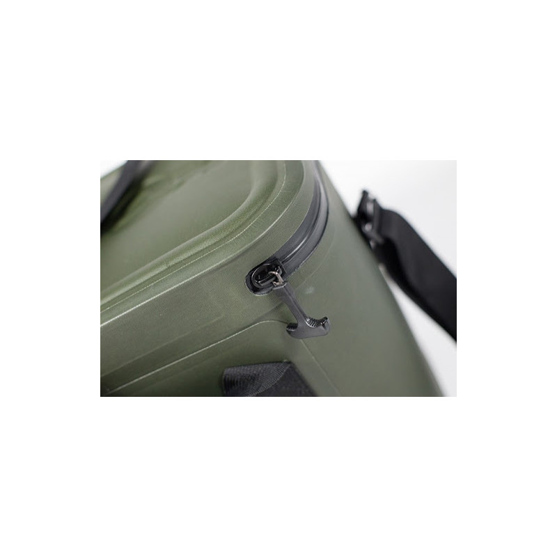 Veko je vybavené nepremokavým, nepriepustným zipsom prvotriednej kvality, ktorý zadrží chladný vzduch vo vnútri boxu a uchová obsah v suchu. Taktiež je vybavený držadlami a popruhom pre ľahšiu prepravu. Tipy na plnenie: Vkladanie ľadu: Ľad alebo chladiace balíčky Compac Cool Packs položte na dno chladiaceho boxu, aby obsah zostal dlhšie chladný. Nechajte box zatvorený: Čím častejšie Compac Cooler otvoríte, tým viac teplého vzduchu sa do neho dostane. Otvárajte ho iba na krátke chvíľky. Nemárnite priestorom: Compac Cooler je efektívnejšie, keď je úplne naplnený. Pokúste sa čo najviac vyplniť prázdny priestor. Obsah vopred schlaďte alebo zmrazte: Ako obsah vložíte do boxu Compac Cooler, je dobré vopred ju schladiť alebo zmraziť. Nižšia predvolené teplota: Pred použitím do boxu vložte ľad, ktorým znížite predvolené teplotu boxu Compac Cooler a ktorý potom odstránite. Tým zvýšite efektivitu na maximum. Použitím chladiacich balíčkov Compac Ice Pack zaistíte, že návnada, potraviny a nápoje zostanú dlhšie chladné. Vodotesný a vzduchotesný zips box zaizoluje a zadrží v ňom chladný vzduch. Popruh je vybavený postranné prackou s rýchlym rozopínaním.