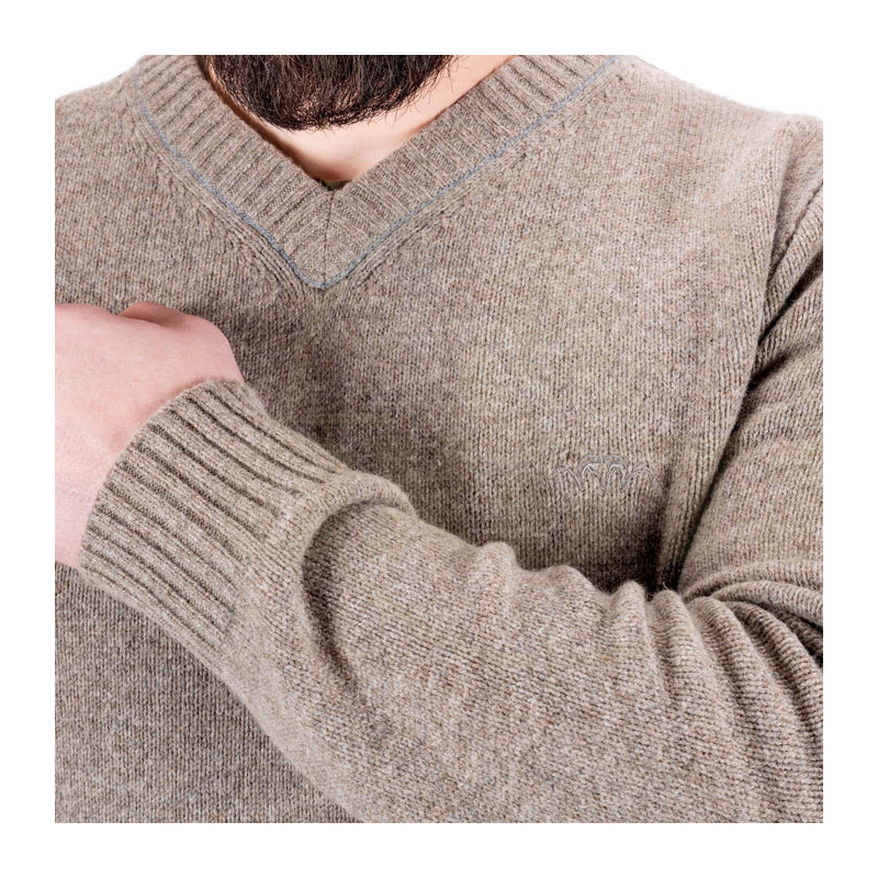 BLASER Strick Pullover s výstrihom. Dekoratívne lakťové obšitie. Diskrétna výšivka logo Argali na hrudi.